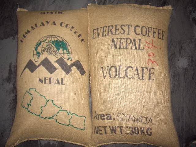 1944年、ビルマ(現ミャンマー)からネパールへコーヒーが持ち込まれました。当初、農民はコーヒーについてあまり関心を持たず、ほったらかしにしていたようですが、70年代に入り、ようやく収入の糧として栽培するようになりました。80年代後半になると、コーヒーマーケットの低迷により、収穫してもほとんど収入がないという状態になったので、多くの農民は栽培を止めてしまったそうです。95年、カブレ郡に設立されたエベレストコーヒーが、コーヒーの栽培から収穫までを指導し、現在では175の生産者グループ(各グループは25家族から75家族で構成)をまつまでになり、年間25トンの生豆を生産しています。その約50%は、日本の焙煎指導により、焙煎豆として国内のホテルやレストランで販売されています。