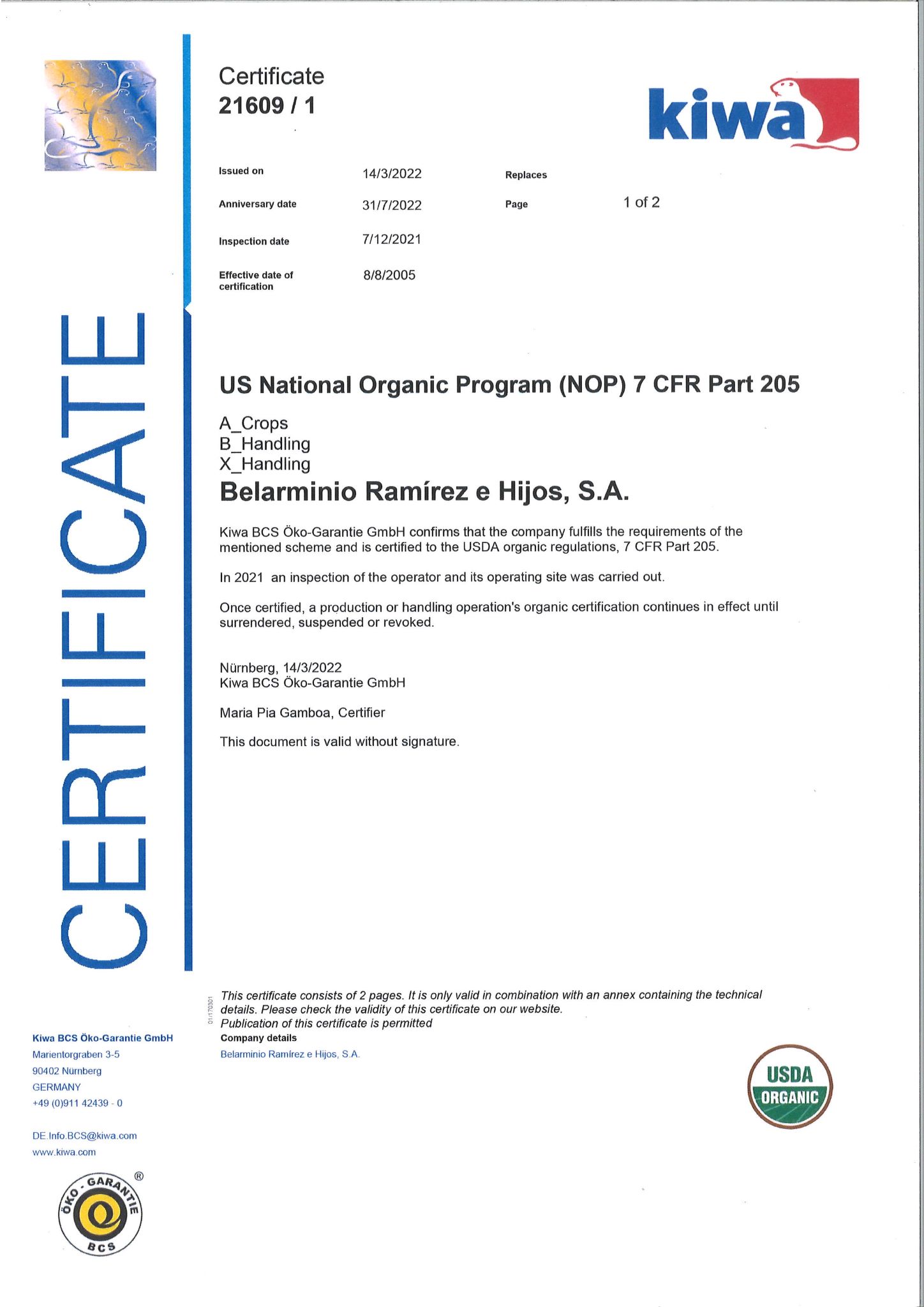 | 品名 | ラミレス オーガニック ウォッシュド |