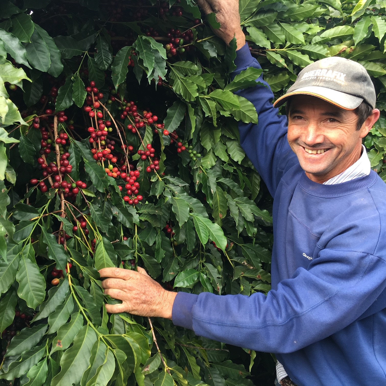 イタリア・シシリー島出身のコンチーニ家が家族で運営する農園。農園主は、アデルバオ・コンチーニ。もともとはポテト農家で、1973年からコー ヒーの栽培を始めた。現在、農園の総面積は120ヘクタール(コーヒー64ヘクタール)。栽培品種の ほとんどがアカイア(ムンドノーボ)で、全生産量は1000袋。精製方法はナチュラル30%、パルプドナチュラル40%、 ウォッシュド30%で、今回買い付けたコーヒーは、ナチュラルの大粒樹上完熟スーパーボイアです。
