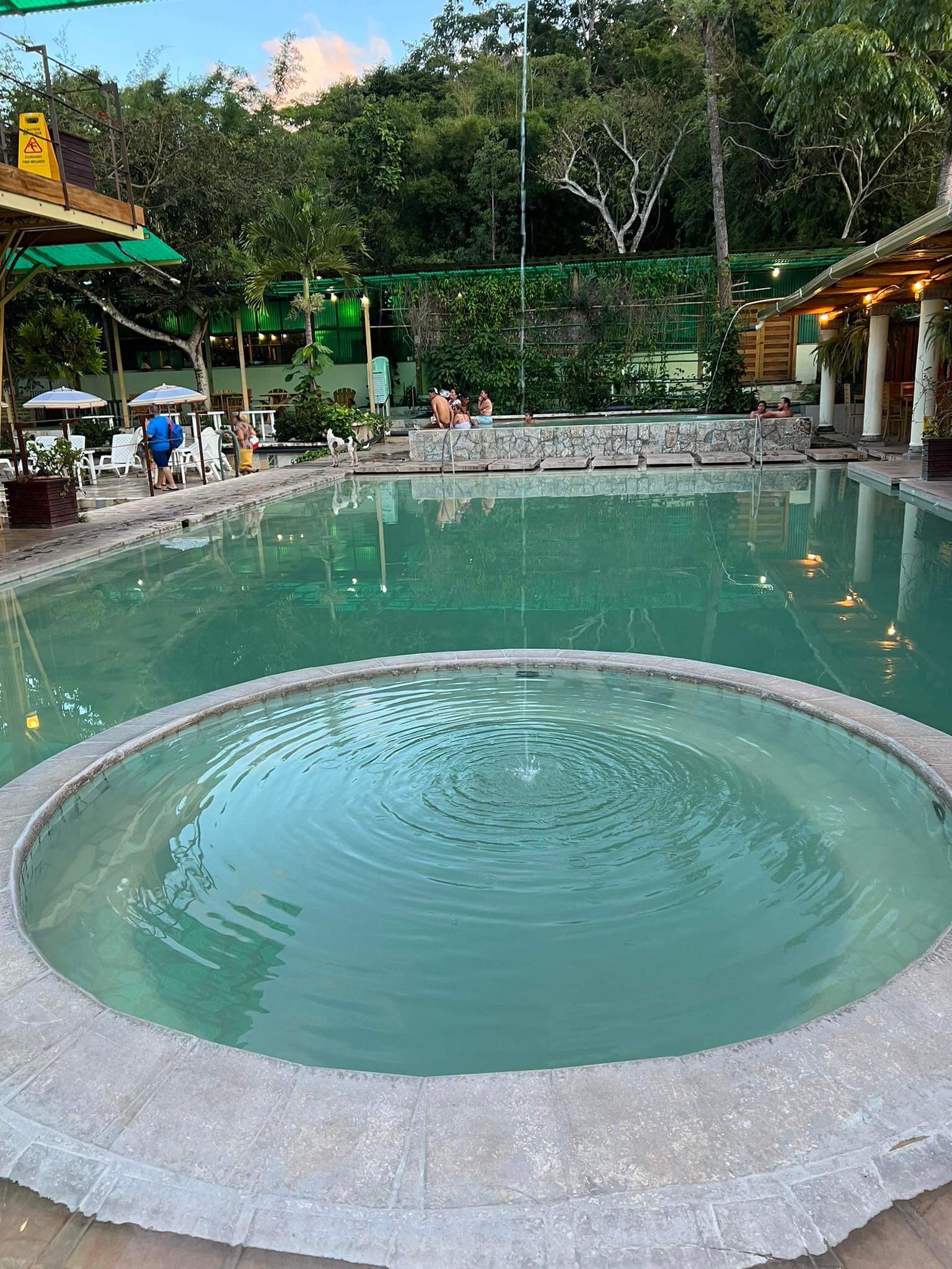 源泉の温度は85℃です。この温泉水を2インチの パイプで温泉プールに引き込み、標高別の6つのプールに流し込んでいます。最後の6番目のプールの温泉水の温度は、32-34℃になります。この冷却され た温泉水で精製している。この温泉の湧き水は現地では長年にわたり長寿の水として地元の人たちに飲まれている。