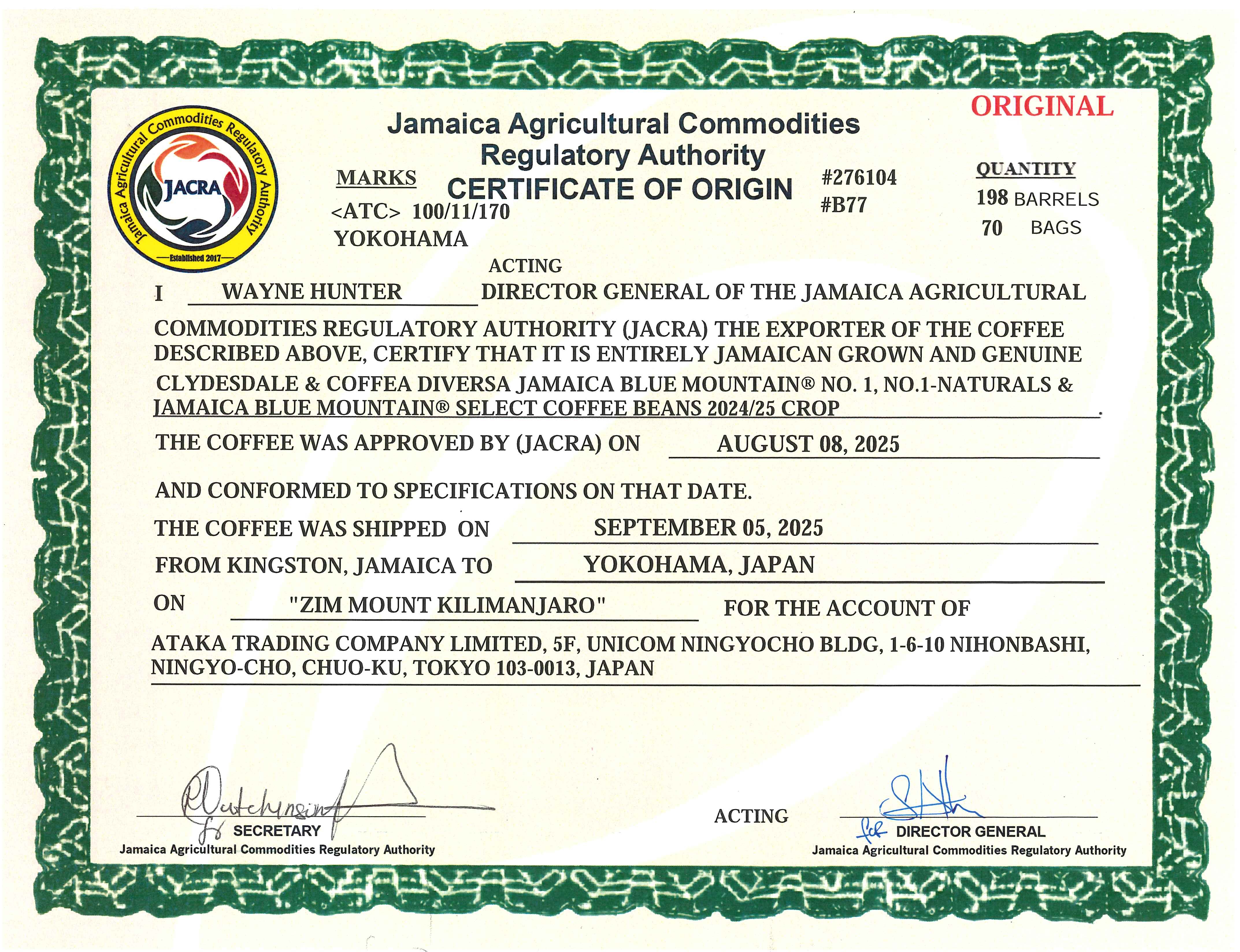 | 品名 | ブルーマウンテンNO1 クライスデール |