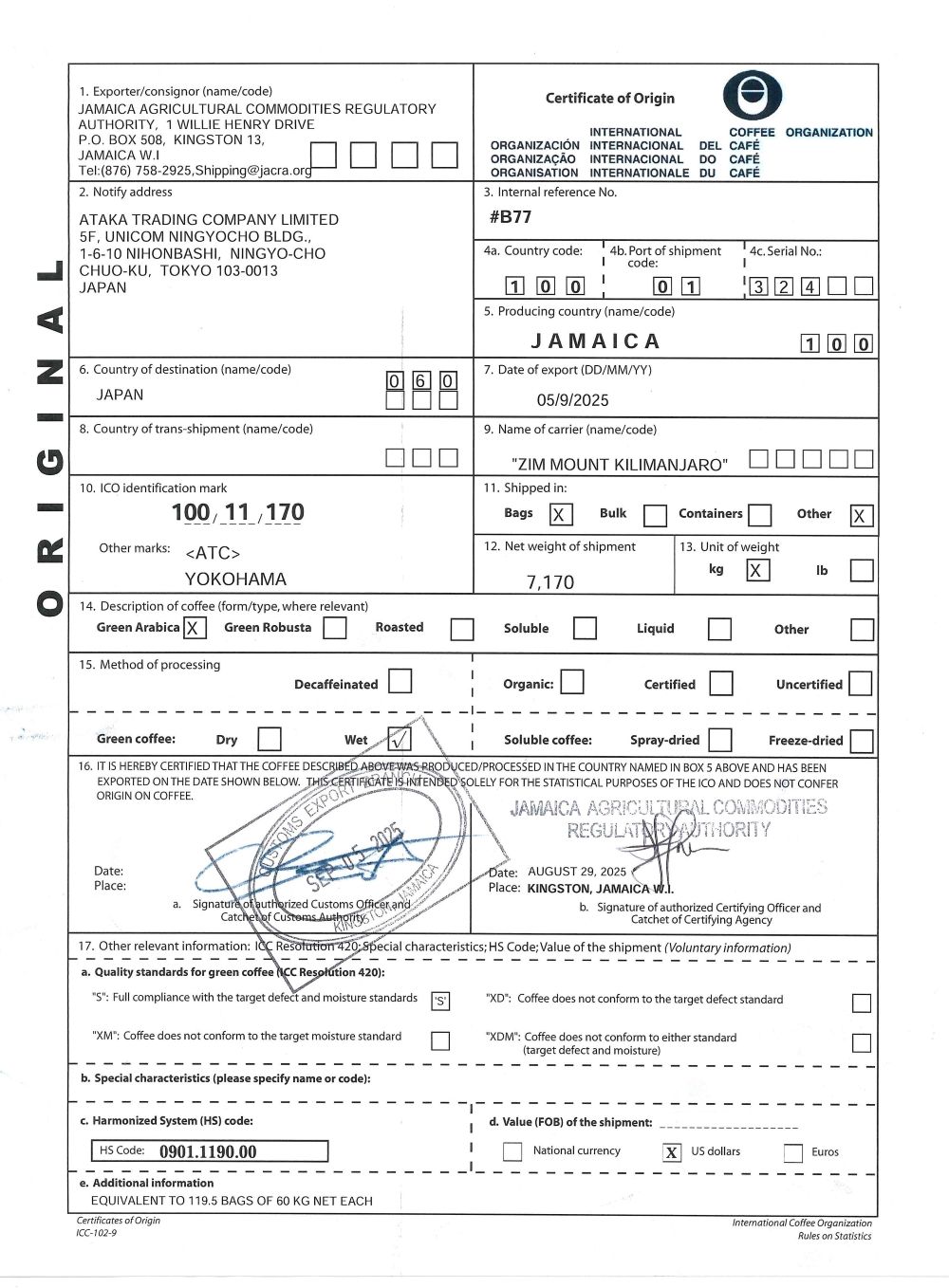 | その他 | 標高:1000-1250メートル、天日乾燥とBMCP(ブルーマウンテンコーヒープロセサーズ)のドライミルにて機械乾燥の併用 |