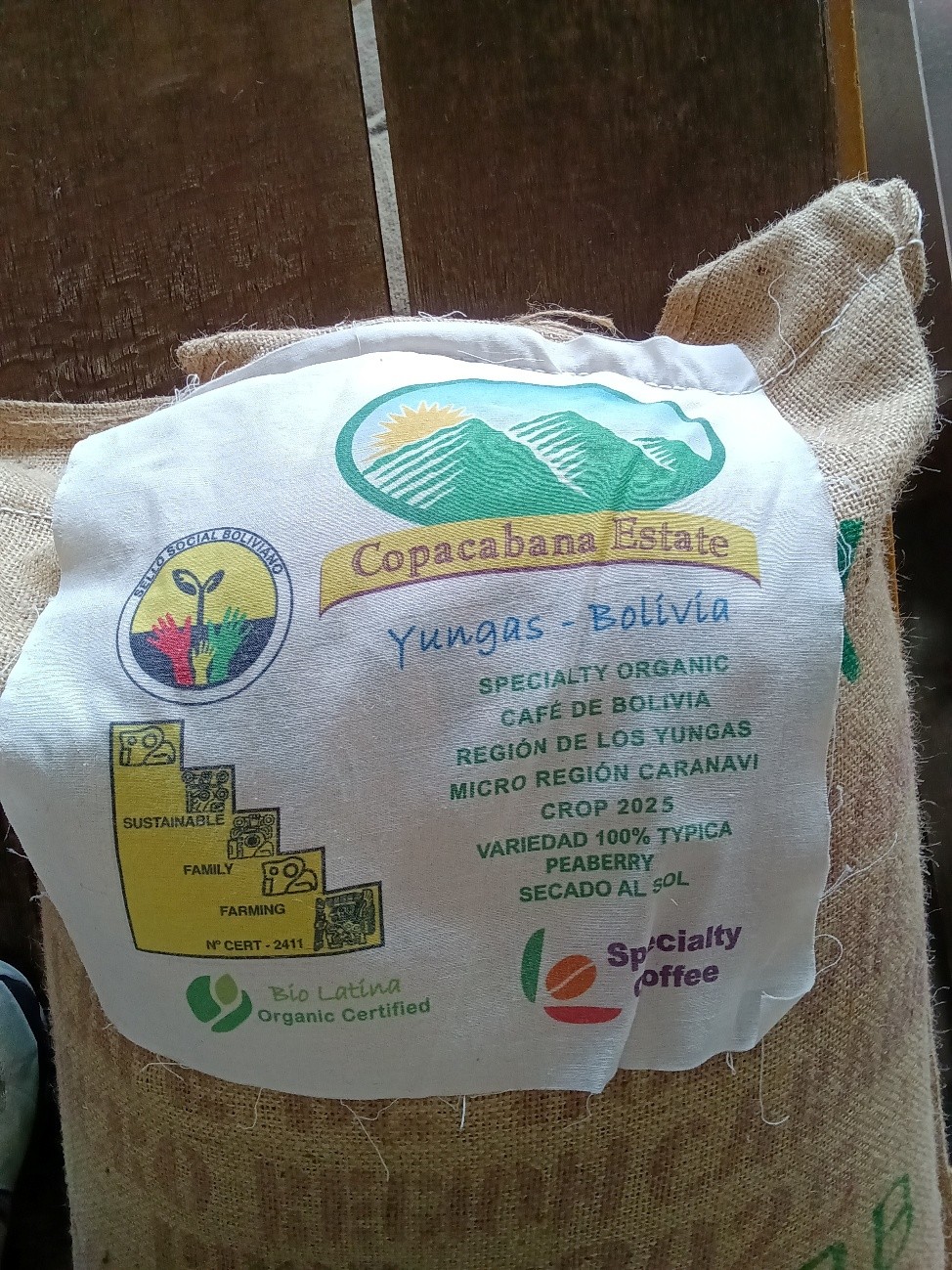 コパカバーナ農園ピーベリー2025クロップが20袋入荷!バイオラティーナの有機認証を取得しているオーガーニック豆。今年で買付け始めてから20年目!