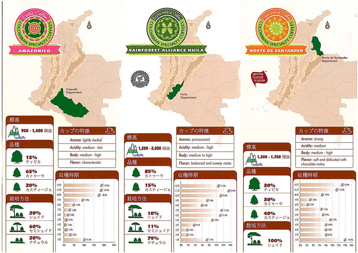| その他 | 標高1730-1800メートル、100%天日乾燥、インガとバナナを利用した日陰栽培、年間降水量1,714ミリ、平均気温17度、 |