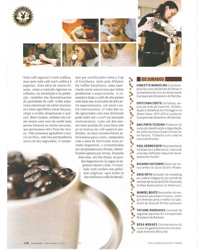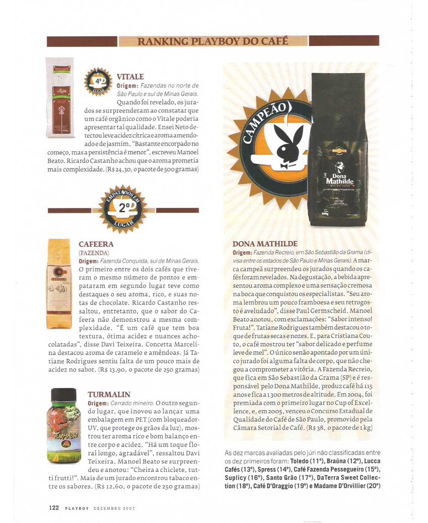 プレイボーイ誌(ブラジル版)12月号が選んだブラジルコーヒー(ローストコーヒー)、トップ10のランキングが出てます。